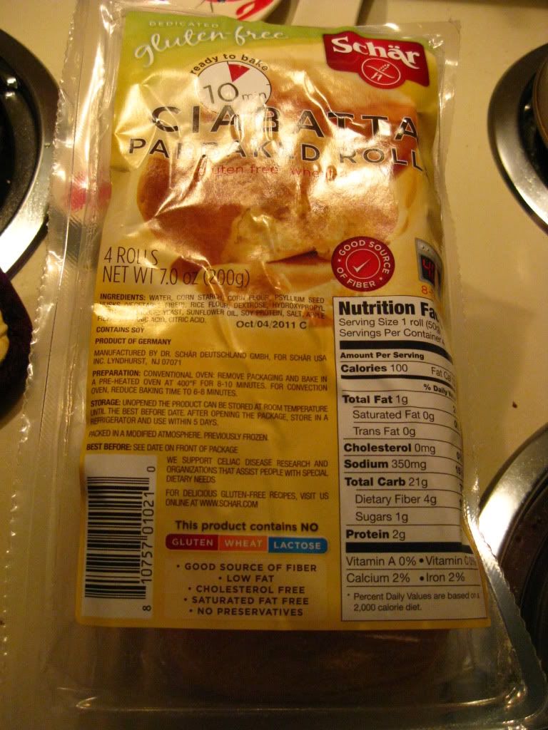 After purchasing a pack of the Schär gluten-free ciabatta rolls (there are 4 in a pack), I took them home to see how they fared. Prep was easy. Open sealed pack. Remove roll. Place on cooking sheet. Bake in oven for 10 minutes at 400°. Remove. Enjoy!