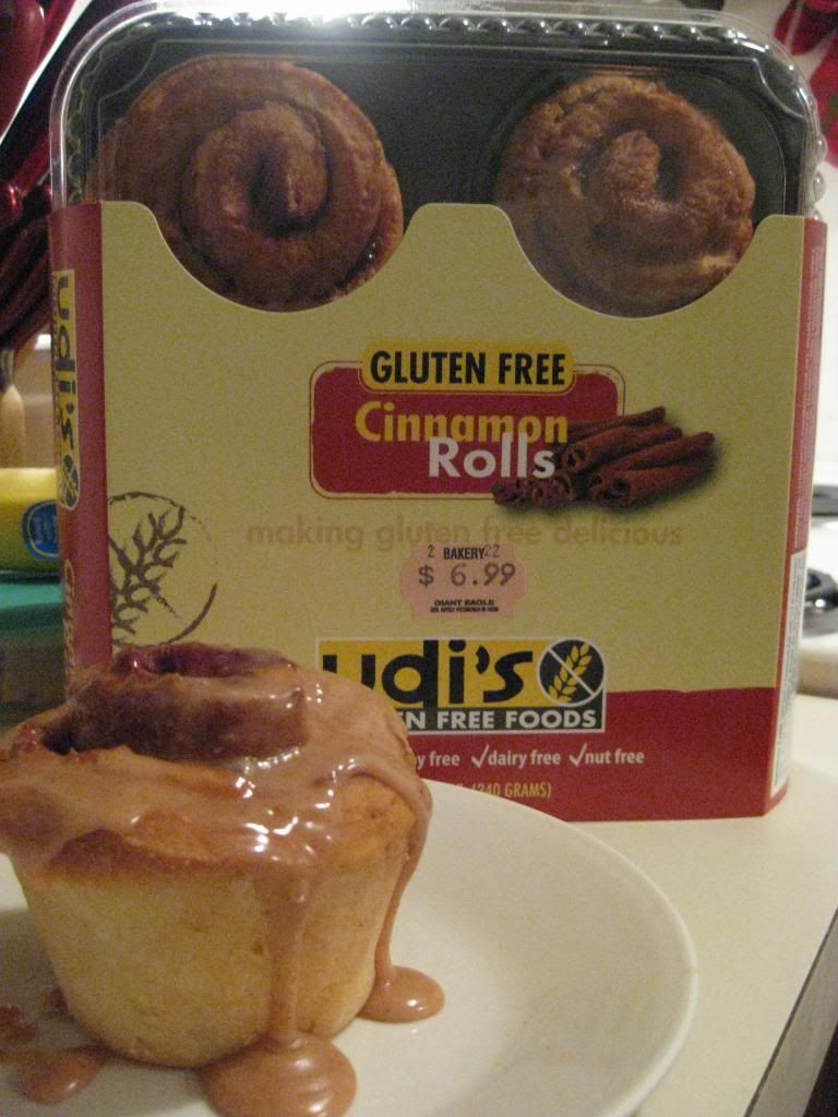 It was an average day at the grocery store and I was standing there with coupons expiring that day for Udi’s Gluten-Free products. I try not to let coupons for anything gluten-free go to waste, so my friend Jenn and I scoped out the section and selected some chocolate chip cookies to feast on, as well as the cinnamon rolls. The cinnamon rolls had been a tempting purchase before…but I always opted for the muffins instead.