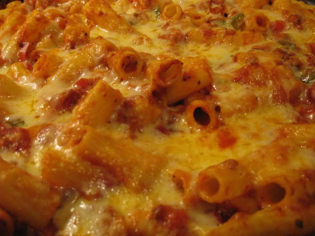 Millers Finest Gluten-Free Corn Pasta Rigatoni used in a Skillet Cheesy Baked Pasta dish