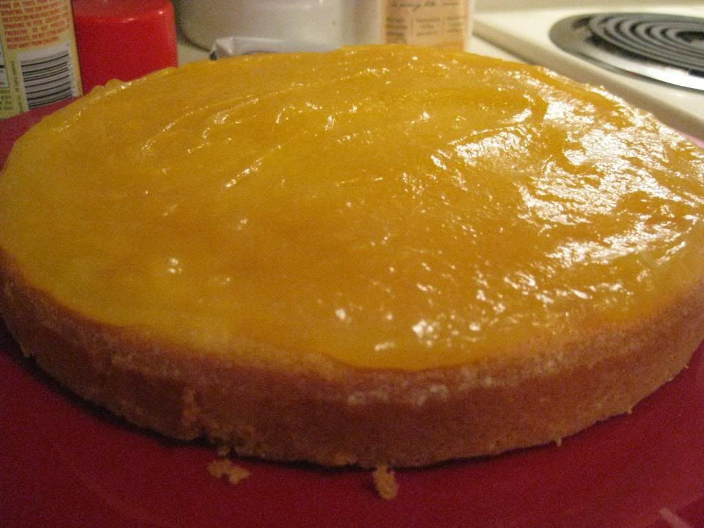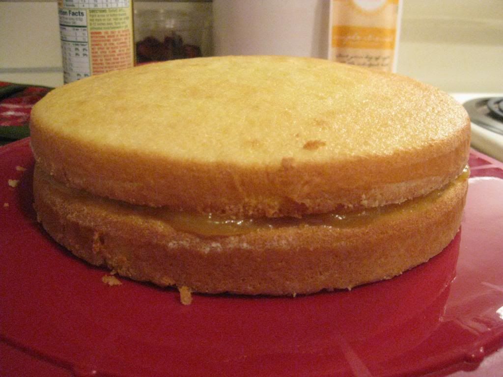 To assemble the cake, place the glass bowl with the lemon curd for the filling into the microwave on high power for 10 seconds to warm it. Transfer one cake layer, right side up, to a serving plate. Spread the top with the warmed lemon curd. Place the second layer, right side up, on top of the first and frost the top and side of the cake with the lemon whipped cream frosting. Refrigerate the cake until time to serve.
