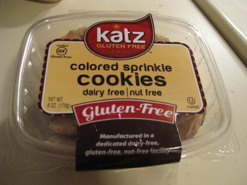 So, when I got my deal on Katz’s products via a gluten-free web deal, I knew I was getting donuts and pizza crusts. I still had some money left, however, so I decided to give some of their cookies a go. My choice, the Colored Sprinkle Cookies.