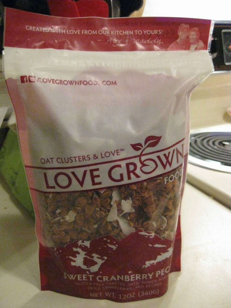One of the biggest bags in there was a pack of Sweet Cranberry Pecan Granola from a company I never heard of – Love Grown Foods. And with a company name like that…how can you resist at least trying it out?