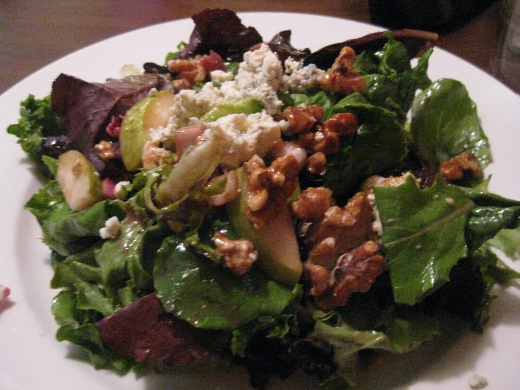 Soon, it was brought out to the table. While my friends both were served lunch portions, my salad was H-U-G-E. I was okay with that. Because when you are making a meal out of salad, it is best to have it big and filling. And, let me tell you, the combination of flavors really worked on this one. The mild greens paired very well with the sweetness of the pairs, and the bite of the onions gave it a bit of volume. But the star of this salad was the fantastic toasted walnuts. Honestly, when mixed with the drizzle of the balsamic dressing, this was the absolute star of the salad. I found myself saving the walnuts for last because I loved the way they tasted. So delicious.