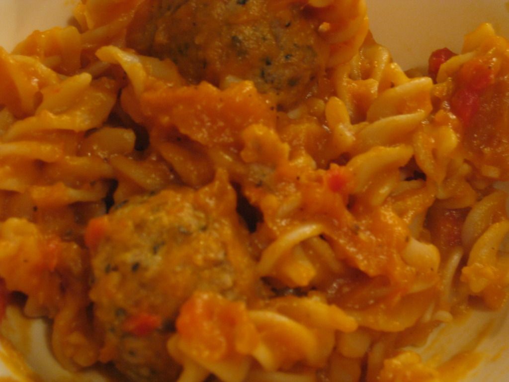 Preparing them was easy. As I was serving my pasta with a gluten-free butternut squash sauce, I simply heated up a pot, put in a serving of the sauce, tossed in the Veggiballs and covered, allowing it to simmer for about 20 minutes. During that time, I brought water to a boil and got my gluten-free pasta cooking to a perfect al dente.