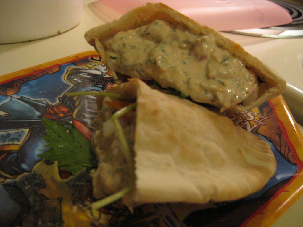 With the pita bread now properly dressed and stuffed it was time for the ultimate taste test.  My roommate and I sat down for dinner and dug in.