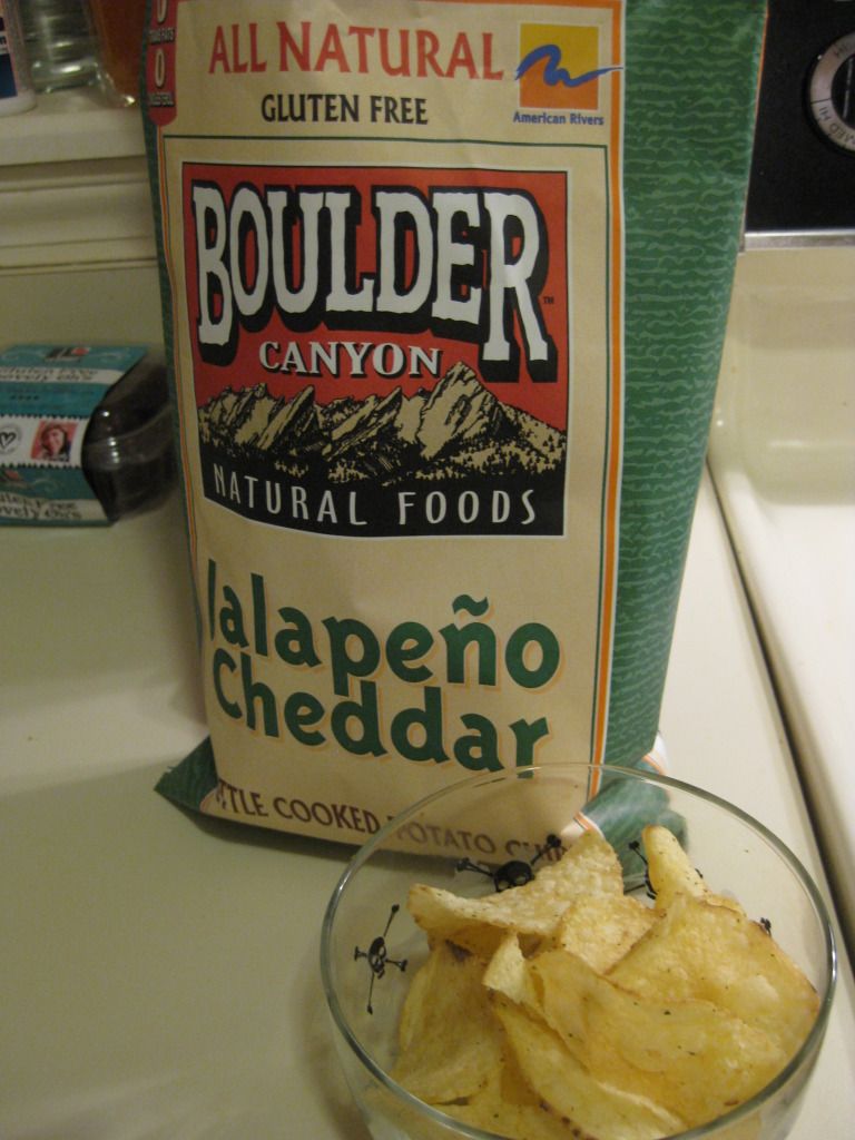 Imagine my joy, then, when I was out at the store in town and spotted Boulder Canyon Kettle Chips on the shelf. While we have had these in the area for awhile…what really caught my attention was the flavor: Jalapeño Cheddar.