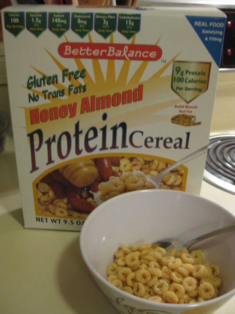 I don’t know what compelled me, out of all the items in the Gluten-Free Trading Company in Milwaukee, Wisconsin, to pick up a box of this cereal.  I think a lot of it was the declaration of PROTEIN on the front of the box.  Like I said…protein is a huge issue for me and I’m trying to work on that.  There were actually three flavors available: Apple Cinnamon, French Vanilla, and Honey Almond.  I chose Honey Almond…because I figured it would taste like Honey Nut Cheerios if nothing else.