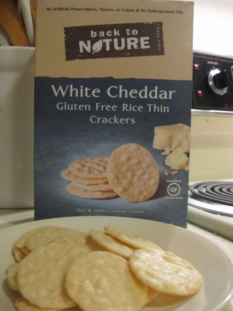 So, when I ran across a sale at my grocery store where certain products were on close-out, my roomie and I just grabbed some items we had thought about trying…but just couldn’t justify the risk of not liking it at that price. So, despite not being completely sold on rice crackers, the Back To Nature Gluten-Free White Cheddar Rice Thin Crackers made their way into the cart…and then into my pantry.