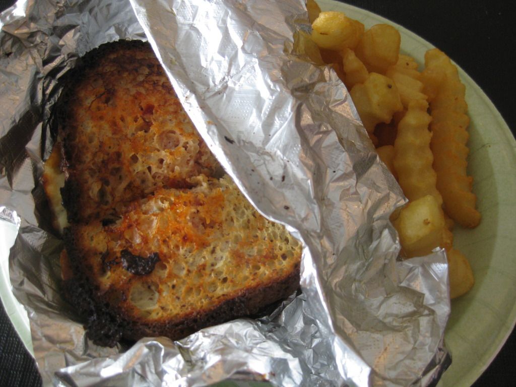 Cathy had decided to go with the Chicken Strips ($6.99), which was three pieces breaded chicken strips served with a side of crinkle-cut fries. Jenn opted for the 8-inch cheese pizza ($8.99). As for me, I chose to go with the Pizza Sandwich (no pepperoni for this vegetarian) ($8.99), which came with a side of crinkle-cut fries as well. With the orders in, we were told it would take about 20 minutes and to go ahead and find a table and they would bring it out to us when it was ready.