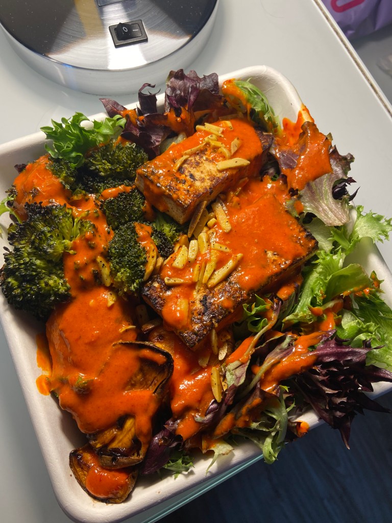Enter my next mistake on this trip. Can you guess what it is? We went down to catch the ferry, which was fine and easy and quick. You did have to go through airport level security, but that wasn’t too bad. We didn’t get a spot to sit down on the ferry to the Statue of Liberty. It was chilly on the water, and the wind was really insane. But…we docked and got off the ferry and made our way to the statue. She was just as I remembered her. The crown still isn’t open, but we were allowed to go up to the Pedestal. This is where I made the error of climbing the stairs up to the Pedestal. Sorry, Kim. I wasn’t thinking. It was 215 stairs, or about 10 stories. But, the views were amazing. I did a lot of the infamous “tourist pose”. And after we made the circuit, we went to head back down. More stairs. Good times. After that, the ferry stopped off at Ellis Island. We grabbed a snack after a little wandering about…an orange and some chips. And water. I was terrible at hydrating too. Whoops. When we got back on the ferry, we returned and made our way back to the hotel. Yes…that pretty much took the extent of all day. WORTH IT. The race was the following day, and while we had intended to go get some sushi at a nearby establishment, we opted to order in The Little Beet again. I got more grains this time with my bowl, and added beets (because those are supposed to help with running performance). After that, I foam rolled and stretched and got ready for bed…because the following morning…was RACE DAY!