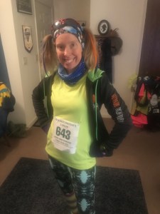 Me after finishing Fast Freddie’s Five Mile Festive Foot Feast