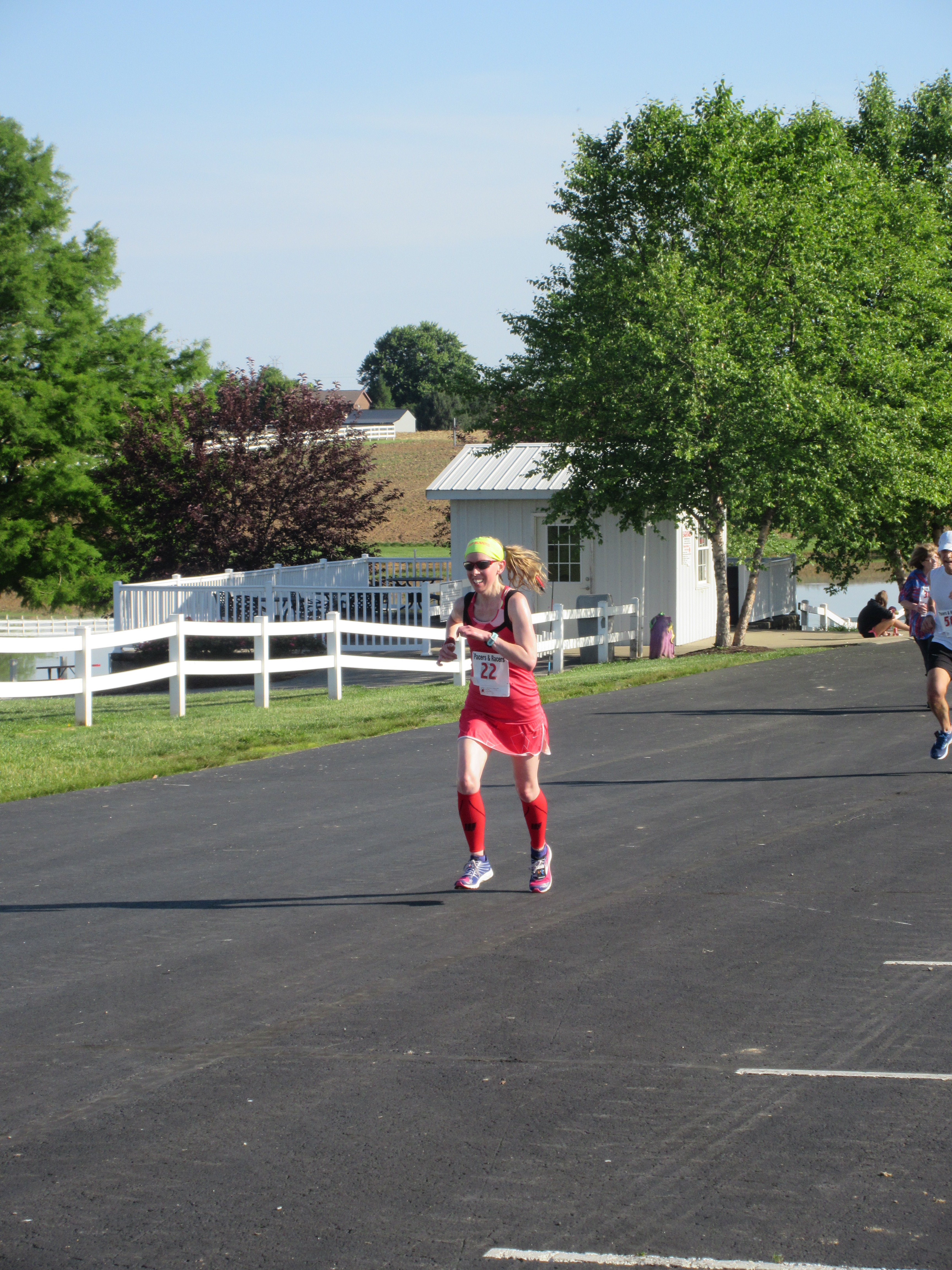 Linda was pacing the lead on her bike…so at her ready…the announcement was given…and we were off. I crossed through the start gate and hoped for the best. As I settled into position on the road around the Egg Lawn, I did notice that I had a small group of ladies running with me. So…conversation time!