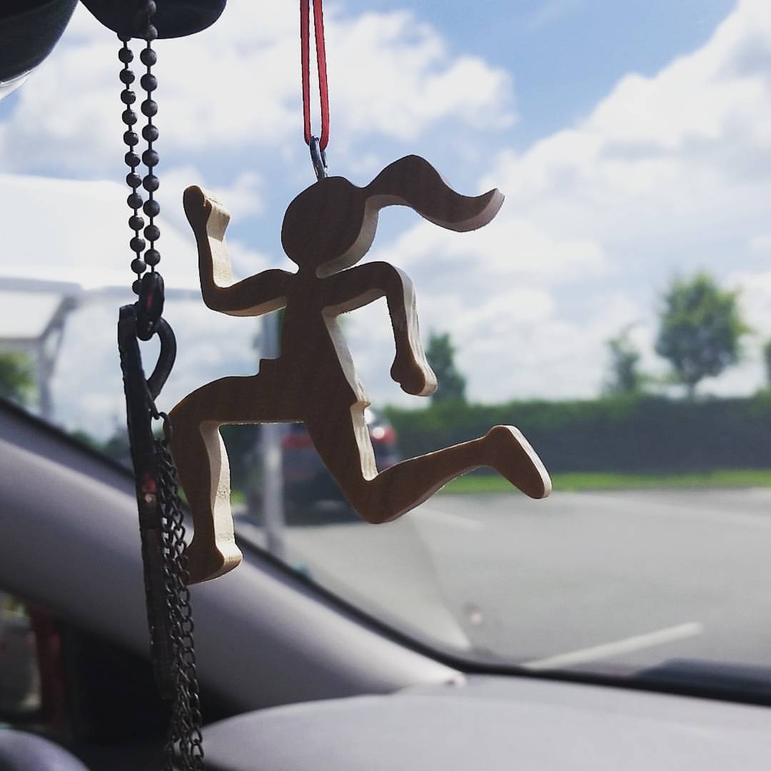 Dean, one of the numerous friendships that I have made in the local running community here in Louisville, is quite the craftsman. He has gifted many a female runner with these amazing wooden Runner Girl’s that he makes himself. I was on the receiving end of one today at the Breakfast Club run (where I did 2 more miles than I thought I was going to do…quicker than I intended). She is hanging proudly off the rearview mirror of my car. Super special. This little gift meant a lot to me, for real. It’s the little things in life that mean the most to me. This was one of them. So, thank you, Dean, for this little token. It lifted my spirits after a hard week…and totally just makes my car look complete! I display her proudly!