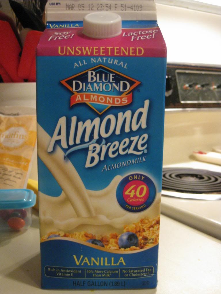 I say finally because it took some time to get it into stores here. In fact, I have only seen it at Wal-Mart, where I normally don’t shop, but I had to go in there for some race clothes one day. While there, I scoped out some products I normally buy elsewhere to compare prices. And what did I find? Yep…the elusive Unsweetened Almond Plus from So Delicious. Needless to say…it came home with me.