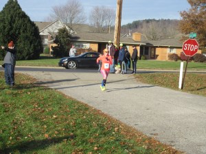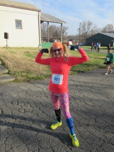 Melissa arrived soon after the photo was taken, bringing my bib and her cute little bundle of joy (and her husband, for good measure, LOL!). I got pinned up and with 3 minutes to go finally headed outside. At this point, Lynn Riedling, a local runner, wandered past and I looked at Cathy and said, “Well…I won’t take overall here anyway!” I stepped out into the cold morning air. No one was really out there yet. It was weird. A lady asked which way we were heading out on the run, and I said, “I guess this way…because that’s how everyone is facing. Usually I don’t have to worry about it because I’m not really speedy enough to lead a race.” She said that was the same with her.