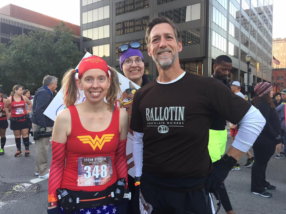 It was the weekend before Halloween…and after a few long runs with my running partner, Matthew, he and I had come up with some fun ideas should he choose to run the Urban Bourbon Half Marathon with me. Like…at one point we were going to dress as Batman & Robin…and then, at the halfway point, we were going to switch out so the other person was Batman and the other was Robin. When we couldn’t find Robin outfits, it changed to Superman & Wonder Woman. I had the Wonder Woman running costume…but as I said…this race was the weekend before Halloween. Superman was a bit difficult to come by. What he did end up with was a great brown cotton shirt. YES! We were SO ready for this!