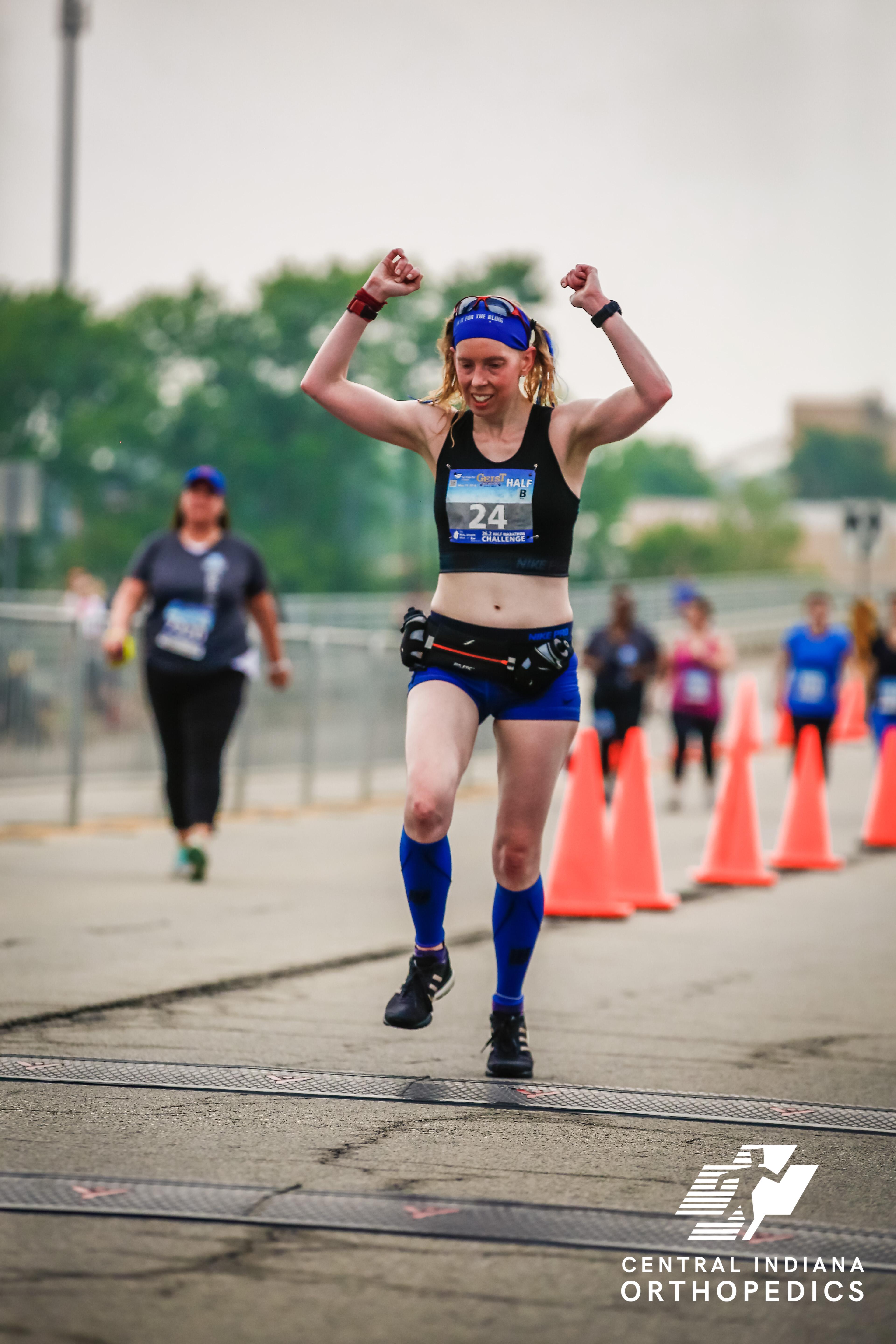 Me crossing the finish line of the Geist Half Marathon – Fishers, IN