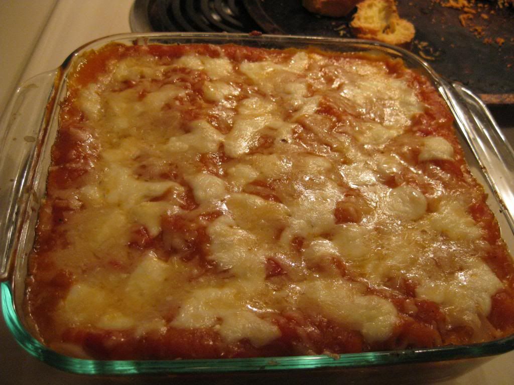 Place lasagna in the oven for 35 minutes or until cheese begins to lightly brown.
