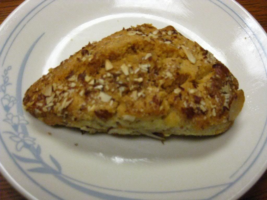 After a lot of pondering and thought…I finally chose to give the Whole Foods Gluten-Free Almond Scones a try. These scones were actually in the classic triangle scone form. They were coated with slivered almonds and looked absolutely fantastic. So…in lieu of more cookies or cakes…breakfast scones were my choice.