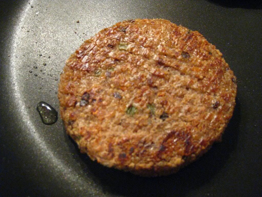 Take note veggie burger enthusiasts: not only are Amy’s Kitchen’s Sonoma Veggie Burgers gluten-free, but they are also dairy-free and soy-free! Each patty is made from organic vegetables, mushrooms and quinoa (which is a very protein-rich grain and one that I am very fond of!). To cook this up, I simply warmed a non-stick pan, spritzed a bit of olive oil on to prevent sticking and laid the patty on there to cook. It didn’t take long for each side to brown up to beautiful perfection.